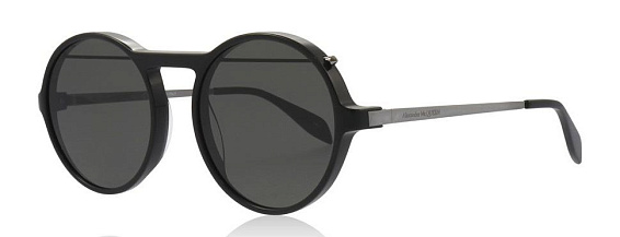 Круглые очки, из материала пластик и цвете черный помогут понять основные черты новой коллекции оправ модного бренда ALEXANDER MCQUEEN.