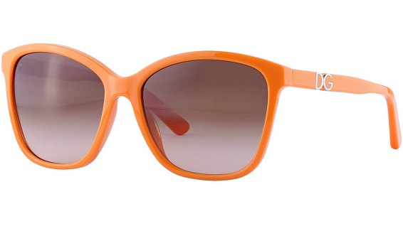 Прямоугольные очки, из материала пластик и цвете оранжевый помогут понять основные черты новой коллекции оправ модного бренда DOLCE & GABBANA.