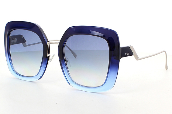 Прямоугольные очки, из материала пластик и цвете синий помогут понять основные черты новой коллекции оправ модного бренда FENDI.