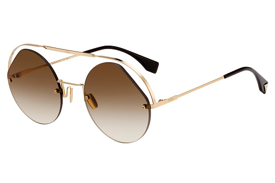 Круглые очки, из материала традиционные металлы и цвете золото помогут понять основные черты новой коллекции оправ модного бренда FENDI.