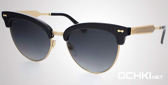 Клабмастер очки, из материала пластик и цвете черный помогут понять основные черты новой коллекции оправ модного бренда GUCCI.