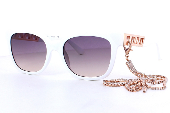Прямоугольные очки, из материала пластик и цвете белый помогут понять основные черты новой коллекции оправ модного бренда GUESS.
