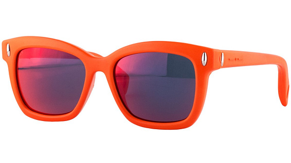 Прямоугольные очки, из материала пластик и цвете оранжевый помогут понять основные черты новой коллекции оправ модного бренда ITALIA INDEPENDENT.
