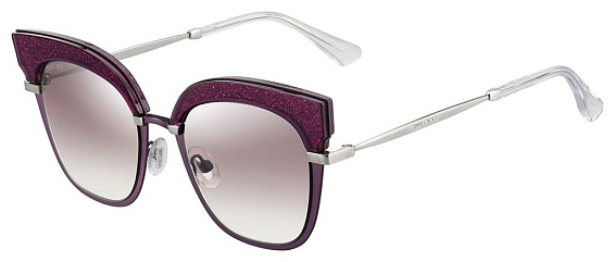 Кошачий глаз очки, из материала пластик и цвете фиолетовый помогут понять основные черты новой коллекции оправ модного бренда JIMMY CHOO.