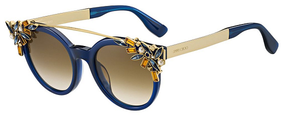 Круглые очки, из материала пластик и цвете синий помогут понять основные черты новой коллекции оправ модного бренда JIMMY CHOO.