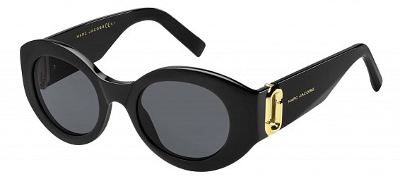 Овальные очки, из материала пластик и цвете черный помогут понять основные черты новой коллекции оправ модного бренда MARC JACOBS.