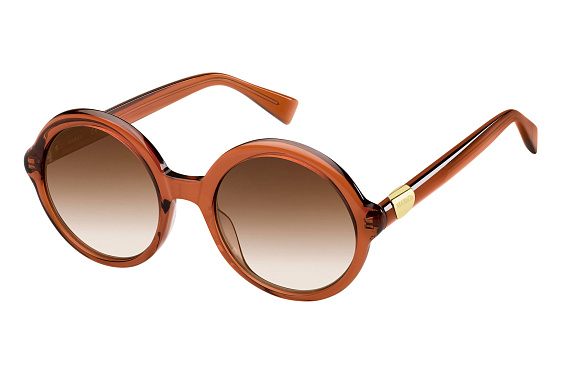 Круглые очки, из материала пластик и цвете коричневый помогут понять основные черты новой коллекции оправ модного бренда MAX&CO.