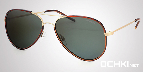 Авиатор очки, из материала пластик и цвете золото помогут понять основные черты новой коллекции оправ модного бренда POLAROID.
