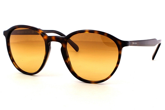 Круглые очки, из материала пластик и цвете коричневый помогут понять основные черты новой коллекции оправ модного бренда PRADA.