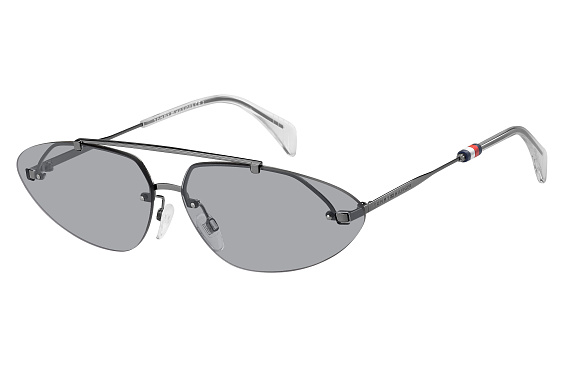 Прямоугольные очки, из материала традиционные металлы и цвете серый помогут понять основные черты новой коллекции оправ модного бренда TOMMY HILFIGER.
