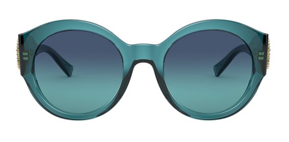 Прямоугольные очки, из материала пластик и цвете голубой помогут понять основные черты новой коллекции оправ модного бренда VERSACE.