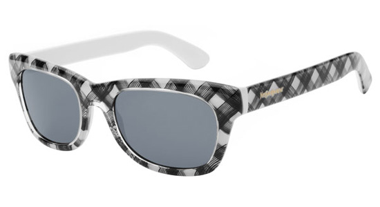 Солнцезащитные очки в ретростиле для мужчин и женщин представлены в оригинальных цветах. Логотип «Yves Saint Laurent» выгравирован на заушниках. Эксклюзивные цвета заимствованы у коллекции prêt-à-porter дома моды: узор «шотландка» и ромбы - мраморный табачный, опаловый серый, песочный, черный.