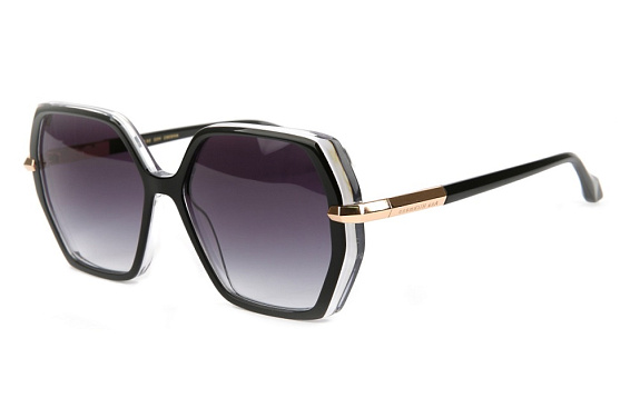 Необычной формы очки, из материала пластик и цвете черный помогут понять основные черты новой коллекции оправ модного бренда ANA HICKMANN.