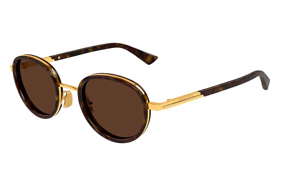 Овальные очки, из материала традиционные металлы и цвете золото помогут понять основные черты новой коллекции оправ модного бренда BOTTEGA VENETA.