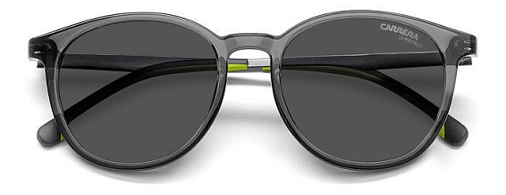 Овальные очки, из материала пластик и цвете серый помогут понять основные черты новой коллекции оправ модного бренда CARRERA.