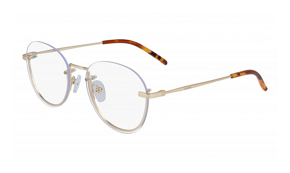 Овальные очки, из материала традиционные металлы и цвете золото помогут понять основные черты новой коллекции оправ модного бренда DKNY.