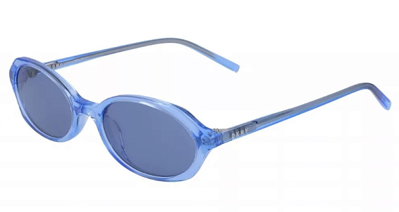 Овальные очки, из материала пластик и цвете голубой помогут понять основные черты новой коллекции оправ модного бренда DKNY.