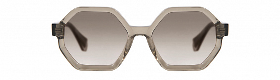 Необычной формы очки, из материала пластик и цвете серый помогут понять основные черты новой коллекции оправ модного бренда GIGI STUDIOS.