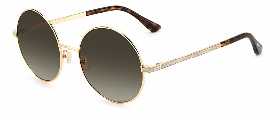 Круглые очки, из материала традиционные металлы и цвете золото помогут понять основные черты новой коллекции оправ модного бренда JIMMY CHOO.