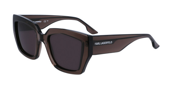 Квадратные очки, из материала пластик и цвете коричневый помогут понять основные черты новой коллекции оправ модного бренда KARL LAGERFELD.