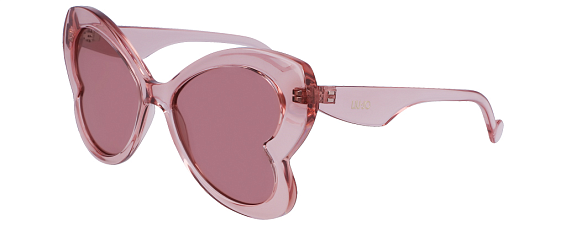 Необычной формы очки, из материала пластик и цвете розовый помогут понять основные черты новой коллекции оправ модного бренда LIU JO.