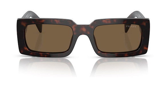 Прямоугольные очки, из материала пластик и цвете гавана помогут понять основные черты новой коллекции оправ модного бренда PRADA.