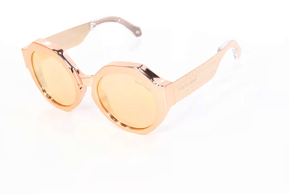 Круглые очки, из материала пластик и цвете золото помогут понять основные черты новой коллекции оправ модного бренда ROBERTO CAVALLI.