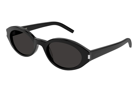 Овальные очки, из материала пластик и цвете черный помогут понять основные черты новой коллекции оправ модного бренда SAINT LAURENT.