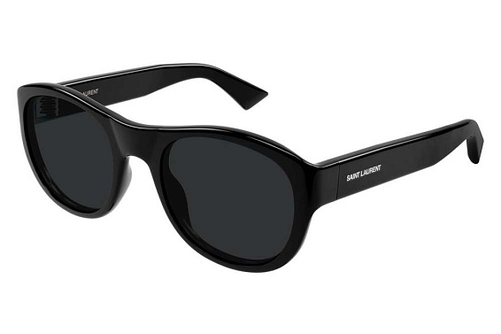 Овальные очки, из материала пластик и цвете черный помогут понять основные черты новой коллекции оправ модного бренда SAINT LAURENT.