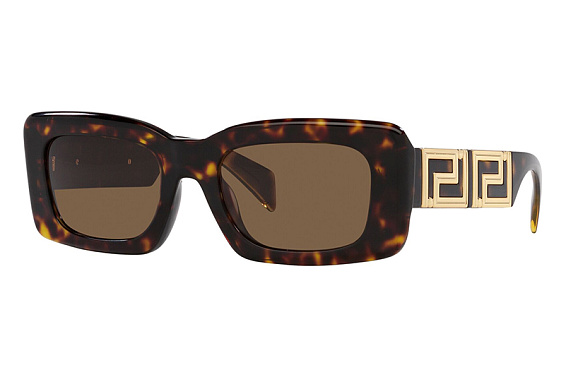 Прямоугольные очки, из материала пластик и цвете гавана помогут понять основные черты новой коллекции оправ модного бренда VERSACE.